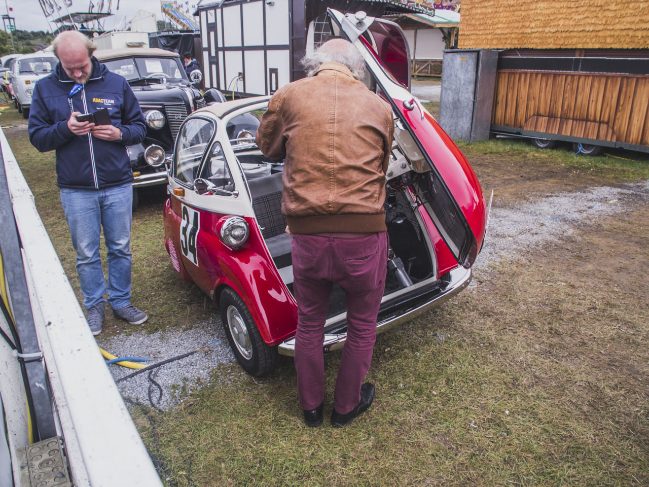 In Soest wurde ich am Mercedes-Autohaus Sternpark bereits erwartet und sehr freundlich von Johannes (Zurich-Versicherung) und Herrn Jühe (Vorsitzender des ADAC Westfalen e.V.) empfangen. Nach Registrierung und technischer Abnahme des Fahrzeugs hatte ich noch ein paar Stunden Zeit, weil ich auf das Eintreffen meines Copiloten und Navigators warten musste. In dieser Zeit erschienen laufend neue Teilnehmer. Es war ein Fest für Augen und Ohren! Ich habe Autos zu sehen bekommen, von denen ich nicht mal wusste, dass es sie gab. Und ausnahmslos alle in einem fantastischen Zustand. Man kennt ja diese Oldtimertreffen, wo 15 VW Käfer und 20 Mercedes -8 anwesend sind. Hier war es anders, von jedem Fahrzeug war nur ein Exemplar vorhanden. Dopplungen gab es bestenfalls dadurch, dass z. B. eine Limousine und ein Cabrio des gleichen Fahrzeugtyps vorhanden waren. Langeweile konnte nicht aufkommen.