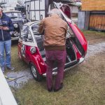 Die Abendveranstaltung des 2. Renntages fand dann in der örtlichen Kongresshalle statt. Hier waren auch die vielen Helfer anwesend, die als dienstbare Geister für den reibungslosen Ablauf im Hintergrund gesorgt haben. Viele Durchfahrtskontrollen, Streckenposten, technische Einrichtungen mussten besetzt werden. Diese Leute haben es trotz der widrigen Wetterbedingungen tapfer durchgezogen und waren immer freundlich. Einen ganz herzlichen Dank an alle Helfer! Am Sonntag kam dann endlich die Sonne raus. Passgenau zur Abschlussveranstaltung im Kurpark von Bad Sassendorf. Zu den rund 80 Fahrzeugen gesellten sich im Laufe des Tages etliche weitere Old- und Youngtimer. Zählen konnte man nicht mehr, ich schätze die Anzahl der Fahrzeuge auf ca. 200. Der Park füllte sich zusehends und es hatte bald einen Volksfestcharakter. Hier wurde dann auch die Siegerehrung vorgenommen. In der Gesamtwertung sind wir auf Platz 69 von 79 gekommen. Das werten wir mal als Erfolg angesichts der zahlreichen Profis. An dieser Stelle auch noch mal ein Glückwunsch an das Team Johannes/Zurich und Sven/Motortalk auf einem Audi Coupe für die Platzierung in der Klassenwertung. Die beiden konnten tatsächlich eine Trophäe nach Hause tragen! Die Wiederauflage dieses Events in den kommenden Jahren ist übrigens schon beschlossene Sache. Der Spaß war die ganze Zeit im Vordergrund. Wir haben sehr viele nette Leute kennengelernt, und eine sehr offene und zugewandte Atmosphäre genossen. Und irgendwie hat es mich gepackt… ich habe mir diese Woche einen Oldtimer angeschaut… 45 Jahre alt, fahrbereit, aber renovierungsbedürftig, dazu ein 2. Exemplar dieses Typs in Einzelteilen. Ich wäge noch ab, denn die Restauration erfordert ja trotzdem einen gewissen zeitlichen und finanziellen Aufwand. Die Vernunft schreit nein… Falls es doch ein ja wird, dann kommen größere Rückspiegel an dieses Auto und man sieht sich bei der einer Klassik Rallye in Bad Sassendorf.