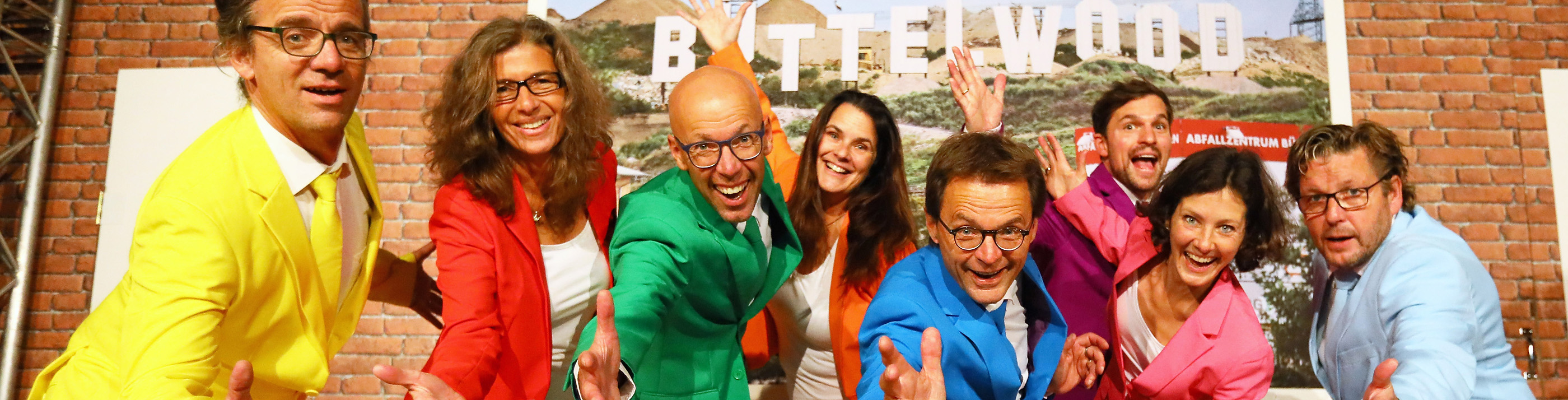Wir sind aus einem Tennisverein heraus entstanden. Dort haben ein paar Freunde und Daniel auf den jährlichen Weihnachtsfeiern immer ein paar Dias an die Wand geworfen oder auch mal ein kleines Programm aufgeführt. Unsere Auftritte kamen so gut an, dass daraus immer mehr wurde, bis wir schließlich 1993 mit BBF erstmals auf Sendung gingen. Damals noch mit einem Auftritt pro Jahr. Inzwischen tritt BBF immer zum Ende des Jahres an vier aufeinanderfolgenden Tagen in der Büttelborner Turnhalle auf, der „Tornhall“ im hessischen bzw. Büttelborner Dialekt. Knapp 300 Zuschauer fasst die Halle – und sie ist jedes Mal bis auf den letzten Platz gefüllt. Die Aufführungen des BBF sind echte Selbstläufer, Werbung brauchen wir nicht. Die Zuschauer kommen mittlerweile von überall her und wenn der Vorverkauf für unsere Stücke startet, sind die Karten innerhalb von ein bis zwei Stunden vergriffen – unglaublich!