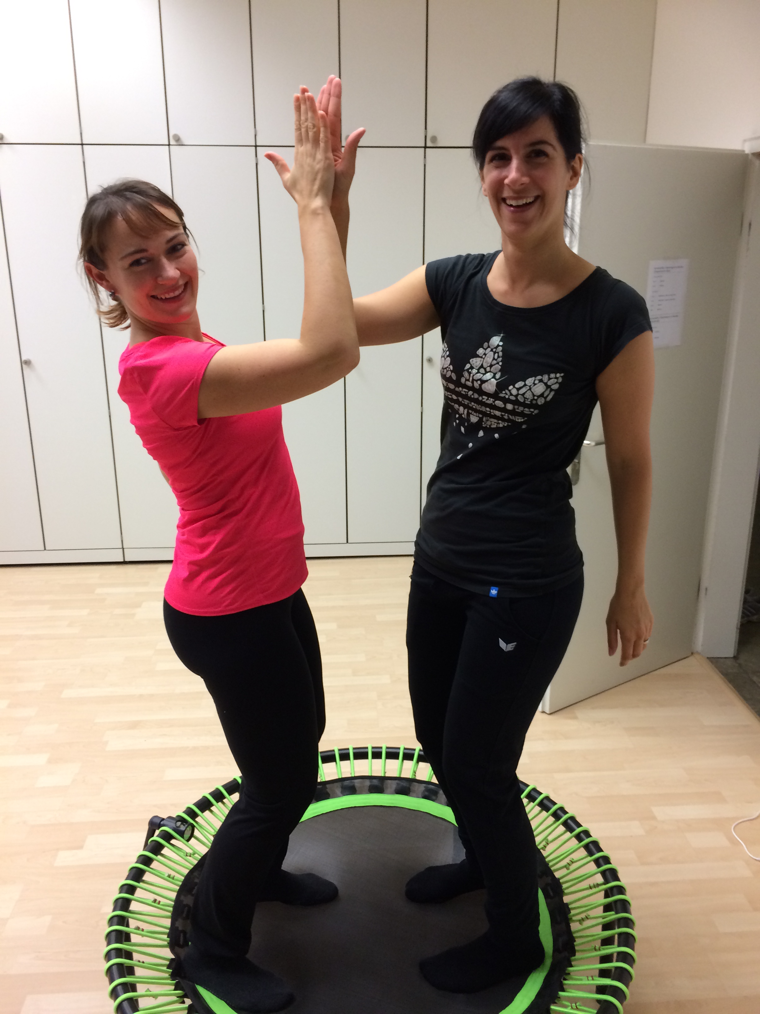 Für Sarah und mich stand nach dem Training fest: Trampolinschwingen macht einfach Spaß! Und dass wir nebenbei noch etwas für unsere Gesundheit tun, war gleich doppelt gut! Wir hüpfen auf jeden Fall gerne wieder … 🙂