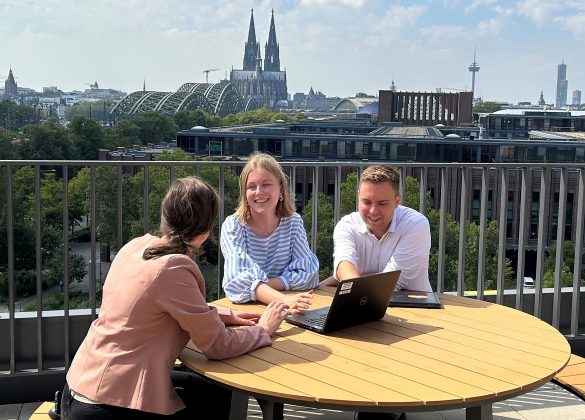 Kontakte knüpfen und Netzwerken wird euch bei eurer Ausbildung immer wieder begegnen. Macht euch aber nicht zu viel Druck – das kommt alles mit der Zeit. Im Juni fand beispielsweise unser großes Betriebsfest im Tanzbrunnen in Köln statt. Hier war viel Zeit zum Quatschen und Kontakte knüpfen, Essen und für die „Höhner“. Regelmäßig finden an unseren Hauptstandorten Frankfurt und Köln „Get-together“ für alle Mitarbeitenden statt. Zusätzlich rate ich euch, beispielsweise einen Kaffeeaustausch mit Kollegen, Alt-Azubis oder Azubis aus eurem Jahrgang im Kalender fest einzustellen, um mit ihnen in Kontakt zu bleiben. Mit Blick auf zukünftige Ausbildungsstationen ist das ganz hilfreich. Einen guten Überblick über die möglichen Ausbildungsstationen bietet das so genannte Jobboard. Hier werden viele Stationen mit allen Aufgaben und Anforderungen beschrieben. Ihr könnt ebenso von Erzählungen und Erfahrungen anderer Azubis profitieren. 😊