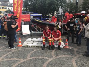 Aufgrund des sehr schönen Wetters und der zentralen Lage der Veranstaltung auf dem Bonner Münsterplatz, waren viele Besucher gekommen, um sich ein Bild über die Arbeit der Organisationen zu machen. Dabei wurde zum Beispiel über Erste-Hilfe und Sanitätsthemen informiert, das THW stellte außerdem Möglichkeiten zur Trinkwasseraufbereitung, Stromerzeugung und die Leistung ihrer Hochleistungspumpen für die Hilfe bei Überflutungen vor. Die Feuerwehr informierte über Möglichkeiten des privaten Brandschutzes, sowie den richtigen Einsatz von Feuerlöschern. Ein besonderer Anziehungspunkt, vor allem für Kinder, stellte das Wasserbecken der DLRG Bonn dar: Die stellte darin nämliche spezielle Boote für den Einsatz in Überflutungsgebieten vor. Über einen Hochwassersteg konnten die Besucher auch in die Boote einsteigen und ein wenig auf dem Wasser gleiten – in dieser ungefährlichen Situation ein trockenes, aber aufregendes Erlebnis.