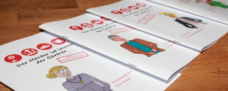 Die Geschichte meines ersten Spiels „Der Mörder ist immer der Gärtner“ dreht sich rund um bunte Blumen und knackiges Gemüse. Am Morgen nach einer Vereinssitzung wird der Vorsitzende des Vereins „Kleingärtner mit Herz undSeele e.V.“ tot aufgefunden. Hat der Tod etwas mit dem geplanten Neubauprojekt der Stadt zu tun? Oder hat der seit Langem tobende Nachbarschaftskrieg ein tödliches Ende genommen? Für alle Interessierten gibt es hier weitere Infos zum Spiel.