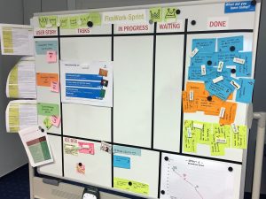 Wir arbeiteten im Projekt agil, nach Scrum. Zurich selbst arbeitet bereits seit einiger Zeit mit dem Design Thinking Ansatz – für uns im Projektteam war es jedoch eine Premiere. Aber wir konnten uns schnell in die Methodik einfinden. Die Arbeit mit Scrum war erfrischend anders. Es ist spannend, sich einem Thema mal nicht konventionell, sondern aus einer anderen Perspektive heraus zu nähern. Unser Baby -das Projekt – nannten wir „FlexWork“.