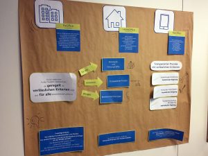 Und da wären wir schon beim ersten Geist, den ich rief. Die Eignungskriterien: Ich erinnere mich, als wir diese entwickelt haben, haben wir unsere eigene Betroffenheit nicht in den Mittelpunkt unserer Überlegungen gestellt, sondern versucht, neutral zu bleiben. Da uns aber andererseits auch sehr bewusst war, wie wichtig es ist, den Anwender und Nutzer nicht außen vor zu lassen, haben wir uns „unbefleckte“ Kollegen und Kolleginnen für einen oder mehrere Tage zeitweise in unser Projekt geholt, um mit ihnen unsere Entwürfe zu diskutieren. Dabei haben wir sowohl Erfahrungen und Meinungen von Führungskräften- als auch die der Mitarbeitenden berücksichtigt. Das war sehr fruchtbar und das würde ich – egal in welchem Projekt ich noch einmal mitarbeite – immer wieder so tun!