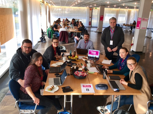Und dann geht’s auch schon los, der Countdown läuft. Aus den zahlreichen Pitches haben sich schließlich 13 Teams gefunden und das kreative Konzipieren nimmt seinen Lauf. Auch unser Pitch kommt an. Und so findet sich ein Team aus fünf Kommunikations-Experten und zwei tatsächlichen Entwicklern. Wir freuen uns, denn diese sind hier besonders rar. Schon recht schnell wird klar, dass „unsere“ Entwickler ein Glücksgriff für die Idee waren. Sie haben bereits die technischen Grundbausteine für die Realisierung unserer PRHack-Idee sozusagen im Gepäck. Zunächst gilt es aber im Team die genauen Anforderungen an den Prototypen zu spezifizieren. Welchen Zweck genau sollte der Bot haben? Welche Daten sollten ihm dafür zur Verfügung stehen und – woher zum Teufel bekommen wir die? It´s all about Big Data. Das merken wir schon in einer sehr frühen Konzeptionsphase. Aber das agile Arbeiten im Team führt – ebenso wie die zahlreichen Süßigkeiten und der beflügelnde Mate-Softdrink – immer wieder schnell zu praktikablen Lösungen von Problemen, von denen wir Stunden zuvor nicht einmal ahnen konnten, dass wir sie haben werden.