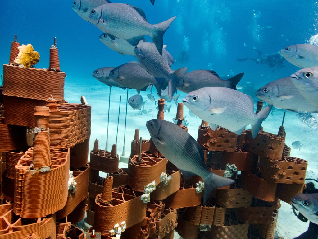 Rrreefs hat sich der Rettung der Korallenriffe verschrieben. Anders als bei anderen Projekten, versucht rrreefs nicht einfach neue Korallen anzupflanzen, sondern baut mit Tonelementen ein naturgetreues Grundgerüst für Korallen und darin vorkommende Lebewesen nach. Diese Systeme aus 3D-gedruckten Ton-Bausteinen werden auf dem Meeresgrund angebracht und bieten neben Korallen auch dem gesamten Ökosystem im Meer einen neuen Lebensraum. Langfristig werden diese Bausteine ökologisch integriert und zu einem autonomen Riff heranwachsen.