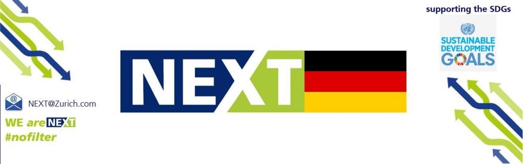 Im Juli 2019 startete NEXT. Ziel der Initiative ist es, einen neuen, jungen Blickwinkel bei Zurich einzubringen. Die jungen Generationen unter den Kunden und Mitarbeitenden sollen gehört werden und ihr Blick auf unsere Welt in Unternehmensentscheidungen einfließen, um somit die Zukunftsfähigkeit von Zurich weltweit voranzutreiben. Schließlich werden sie einmal unsere zukünftigen Kunden und Führungskräfte sein.