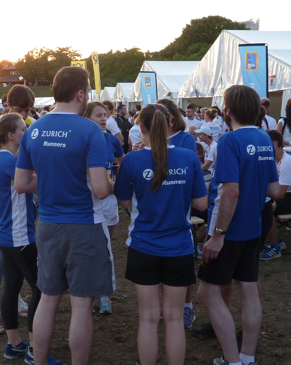 Nach circa 25 Minuten erreichte ich das Ziel. Dort sprach mich ein Läufer an und bedankte sich, dass ich ihn „gezogen“ hätte. Auch das macht eben den Firmenlauf aus, die Gemeinschaft, das Miteinander, die gegenseitige Motivation. Mit anderen Kollegen ging ich dann langsam zurück zum Zurich Zelt. Kaltgetränke, Snacks, Obst – für alles war gesorgt. Ich tauschte mich mit einigen Kollegen über das ein oder andere berufliche oder private Thema aus. So verging der Abend für mich sehr schnell und gegen Einbruch der Dämmerung trat ich den Heimweg an.