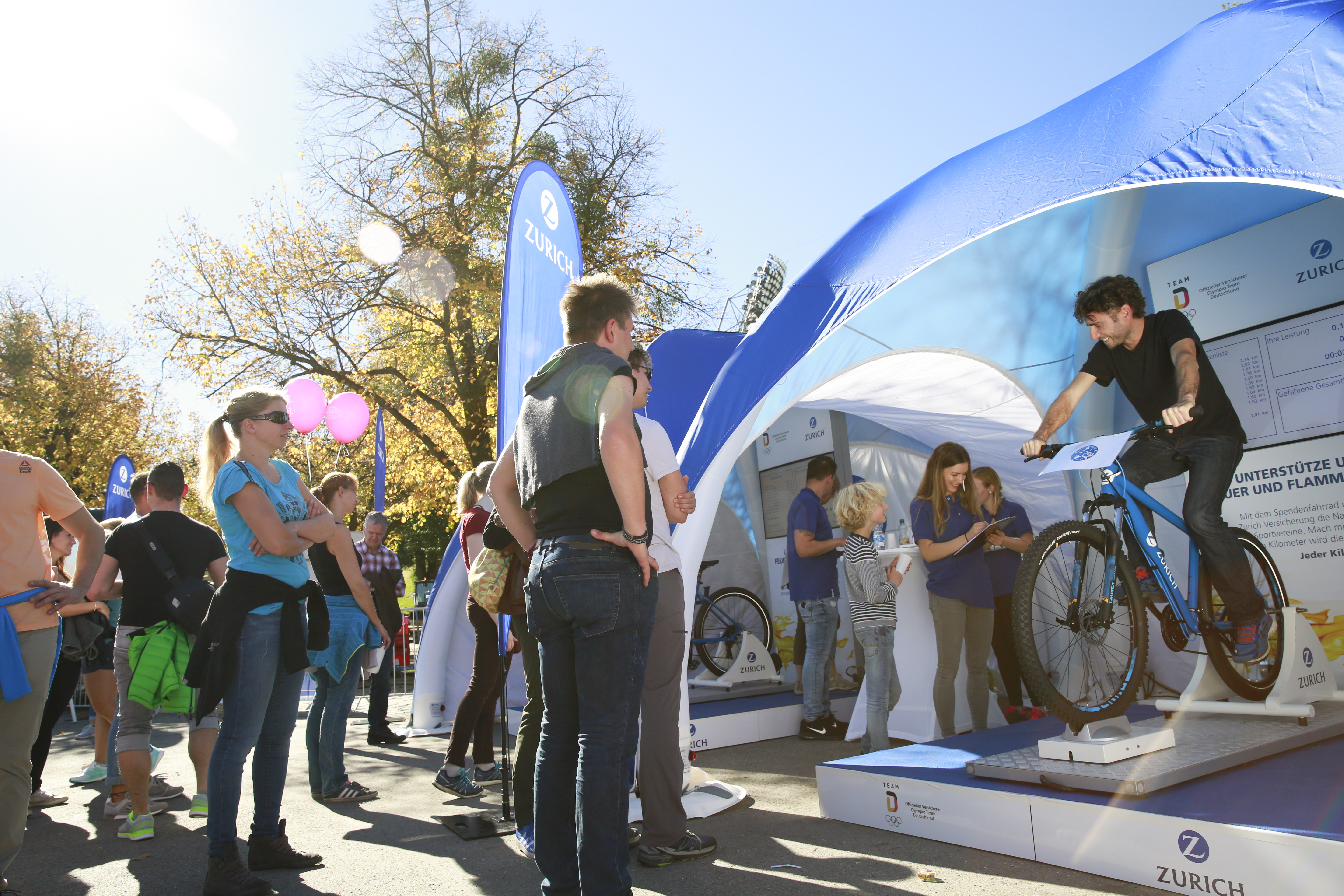 Zum Einsatz kommt das Spendenfahrrad aber auch auf Mitarbeiterfesten, in der Zurich Lounge im Deutschen Haus bei den Spielen in Pyeongchang und bei weiteren Events, wie bei der letzte Woche stattgefundenden Einkleidung der Olympiamannschaft im Postpalast in München.