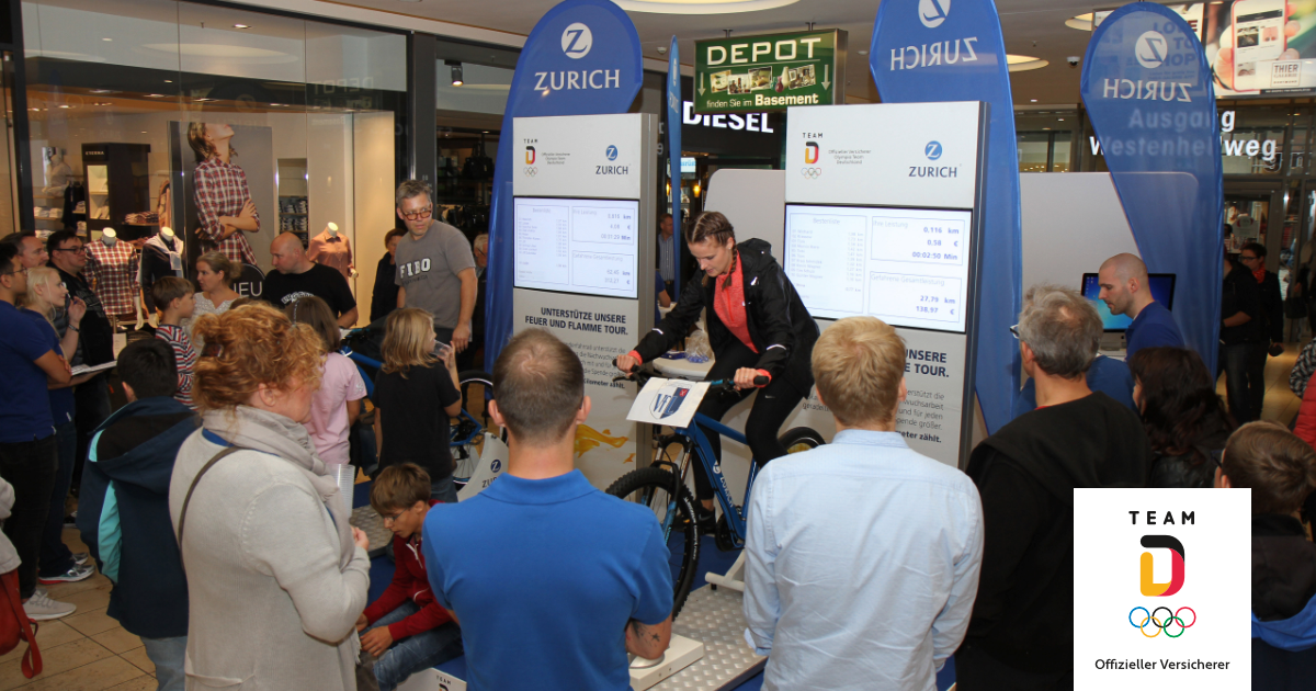 Unsere Partnerschaft mit dem Deutschen Olympischen Sportbund (DOSB) verschafft uns eine enorme Reichweite und lädt unsere Marke bereits seit 18 Jahren emotional auf. Weil der DOSB neben dem Spitzen- auch für den Breitensport steht, nutzen wir die Partnerschaft lokal unter Einbindung unserer Vermittler. So engagieren wir uns für die sportliche Nachwuchsförderung, die uns ebenfalls ein großes Anliegen ist. Mit der ‘Feuer und Flamme Tour‘ richtet sich Zurich deutschlandweit an die Vermittler und ermöglicht ihnen, auf lokaler Ebene neue Vereine anzusprechen. Im Mittelpunkt der Tour steht das Spendenfahrrad: Für jeden erradelten Kilometer fließen fünf Euro in die Vereinskasse für die Nachwuchsförderung. Über Social Media haben Vereine die Möglichkeit, sich dafür zu bewerben. Eine klasse Sache also! Die Athleten des ‚Zurich Sports Team‘ steigen auch aufs Rad und radeln für den guten Zweck. So werden sie zu Nachwuchsstars ‚zum Anfassen‘ – für Vermittler eine ideale Plattform, um den Kontakt zu Bestands- und potenziellen Neukunden zu pflegen.